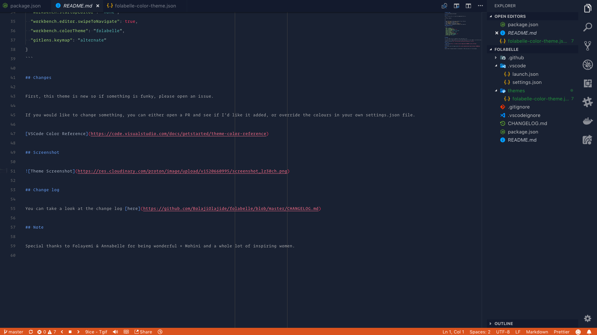 The dark theme is based on a cross-breed of Monokai and Palenight material theme while the light theme is based off of theme-bluloco-light theme.
