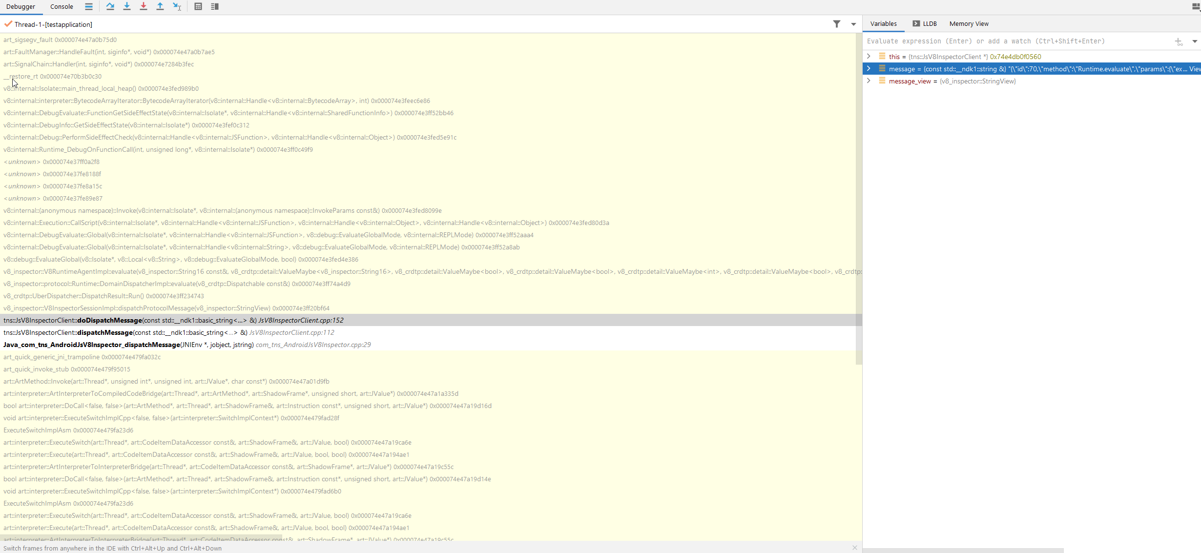 console.log()and/or otherconsolestatements to theonClick()handler intest-app/app/src/main/assets/app/MyActivity.js.ns debug android --startin the test-app folder. (You'll need to add fake project files to test-app for this to work. e.g, as in a19acb5)devtools://devtools/bundled/inspector.html?ws=localhost:40000. Open this URL in Chrome.consolestatements appear both in the terminal and in the Chrome devtools.