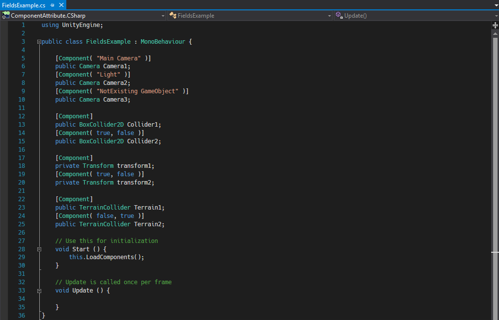The only thing you have to do is add the component attribute to fields and/or properties that you want and call this.LoadComponents(); in the awake, start, on enable, or any other place for that matter and you are good to go.