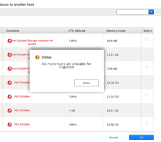 No more hosts are available for migration. Popup has been removed to avoid confusion cleaner user experience.Popup,