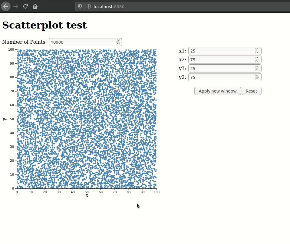 2. Try to set the currently visible window (https://github.com/datavisyn/datavisyn-scatterplot/blob/develop/src/AScatterplot.ts#L684-L696), e.g. x1 = 25, x2 = 75, y1 = 25, y2 = 75 (this should be a zoom factor of 2 in the demo having the domain in x and y set to [0, 100])