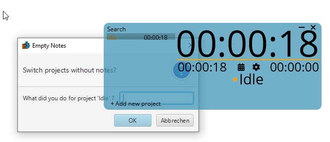 E.g. empty notes reminder is shown behind KeepTime  Expected: Dialogs are in front of the main UI