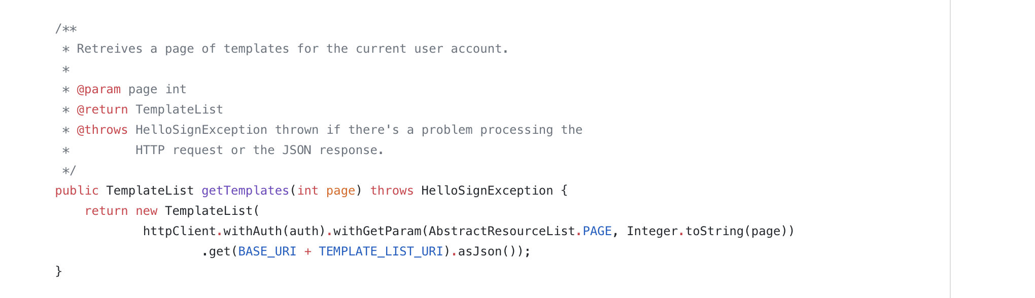 Currently, the page number parameter can be passed to getTemplates(), but the page_size parameter cannot be set.