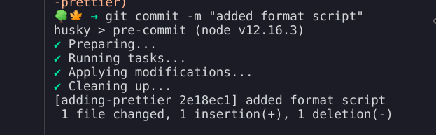 - Imp: already ranned prettier over all the files in src directory via npm run format. - added format script for future reference - now complete codebase is consistent with styling via prettier. - and bad commits protected via husky.